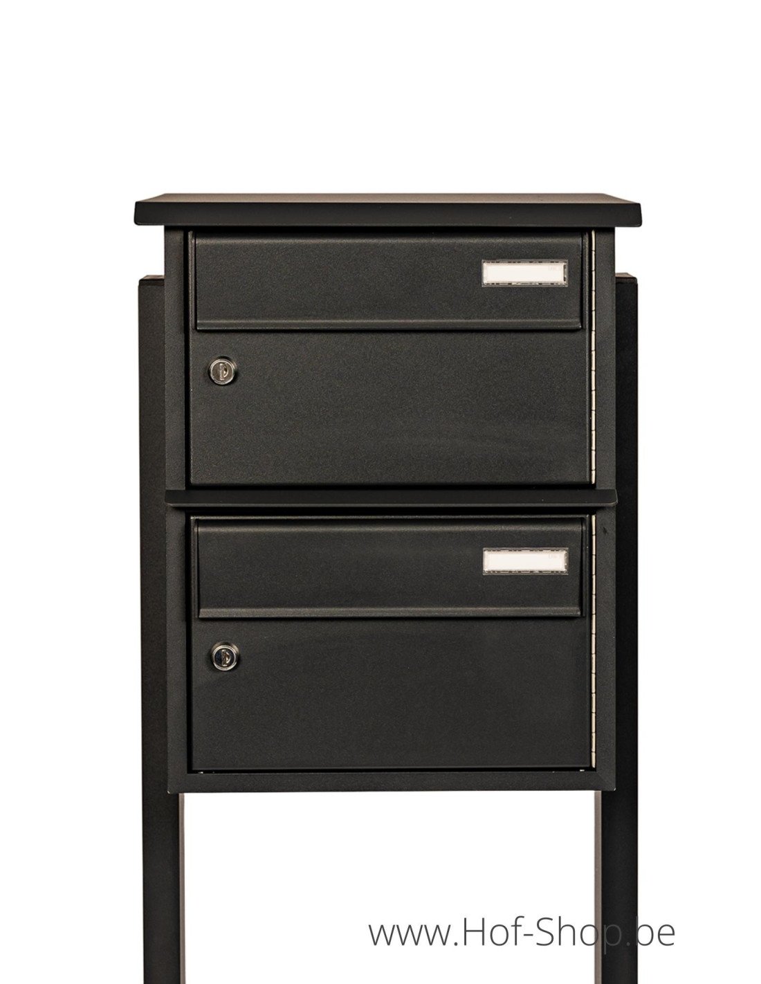 De brievenbus is voorzien van vlakliggende brievenbuskleppen.