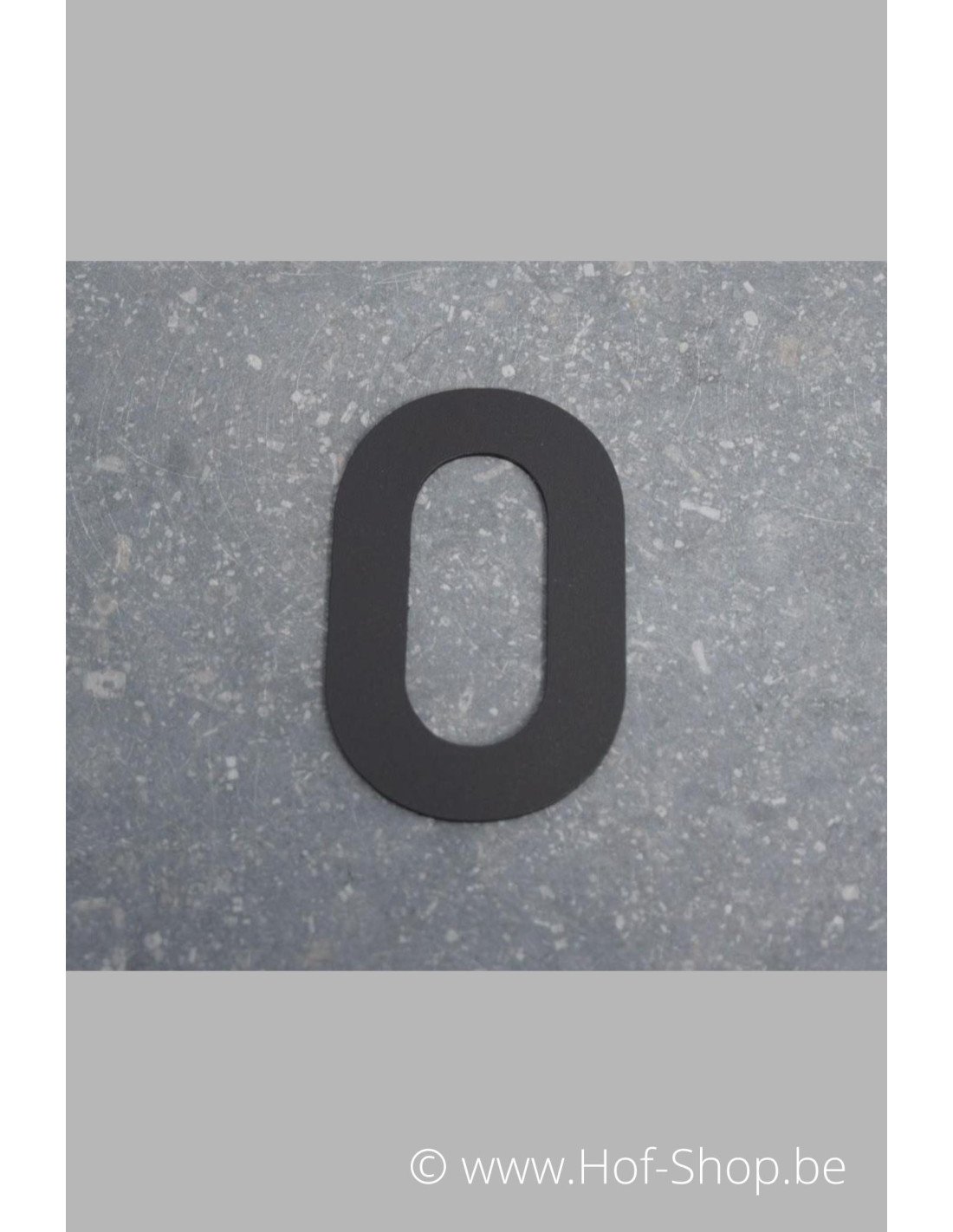 Cijfer zwart gelakt met een poedercoating in ral 9005 structuur.