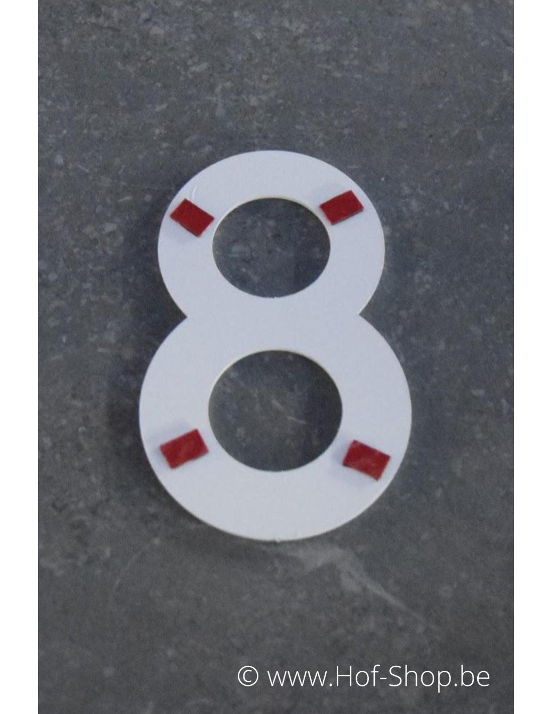 Cijfer in aluminium (mat wit textuur) te bevestigen met dubbelzijdige kleefband (inclusief).