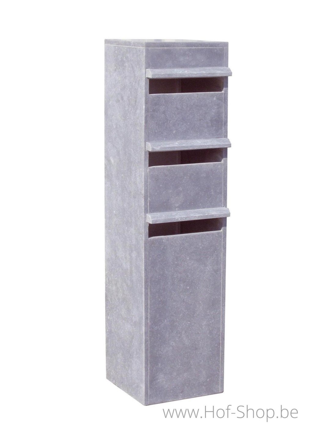 Valencia Triple is een stijlvolle multibox brievenbus in Belgische blauwe hardsteen. Deze vrijstaande brievenbus bestaat uit drie aparte postvakken.