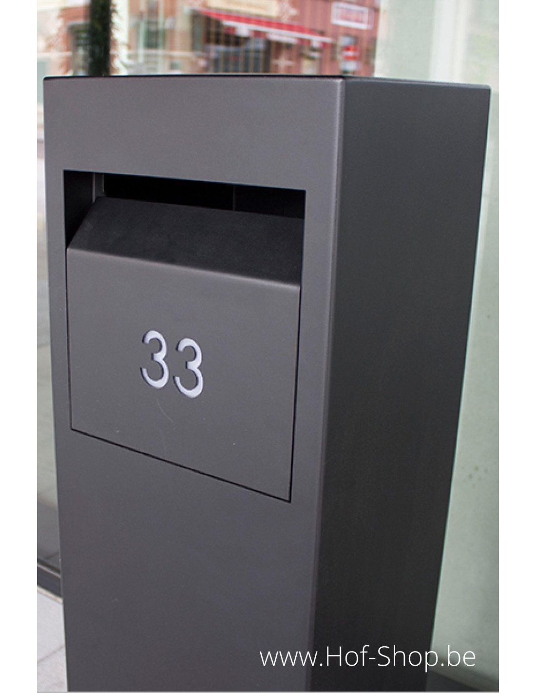 - nummer laseruitgesneden op front van de klep, +/- 50 mm hoogte