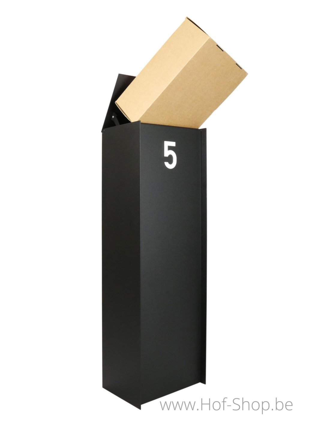 Uw pakjes en brieven worden bovenaan in de bus gedeponeerd. Wanneer het deksel gesloten wordt, vallen deze zacht naar de bodem waar ze enkel via een sleutel uitgehaald kunnen worden. Deze methode laat toe meerdere pakjes veilig na elkaar te ontvangen. De opening van de insteekgleuf voldoet aan de postnormen. Het deurtje om uw post en pakketjes uit te halen, is aan de achterzijde van de pakketbus.