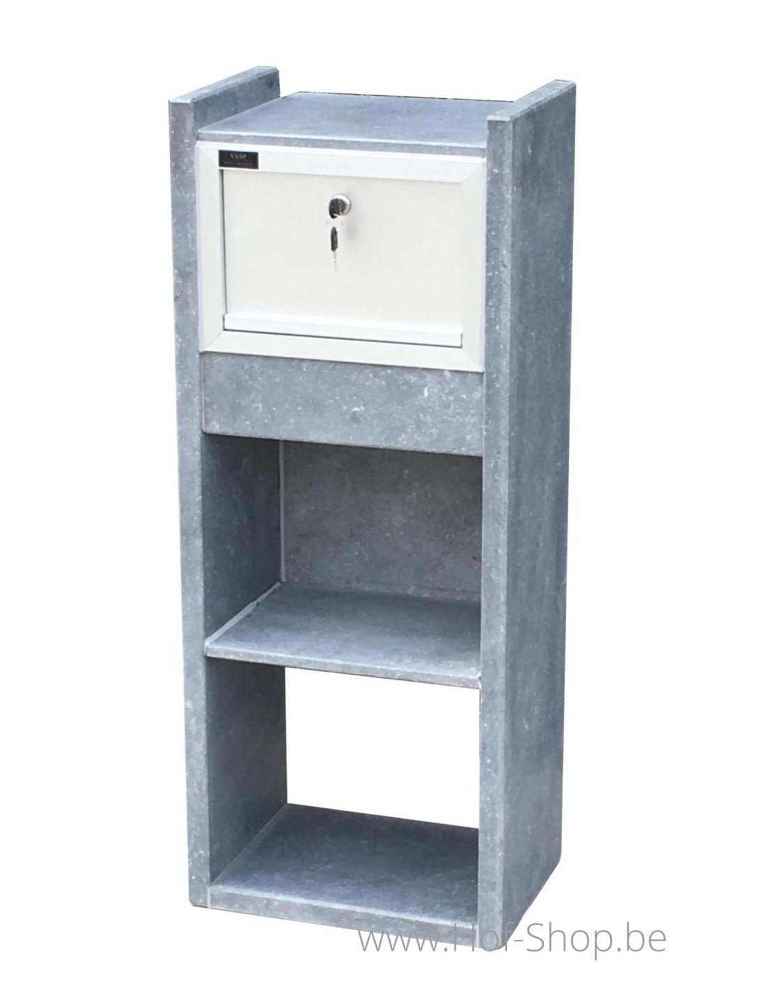 VASP produceert brievenbussen van topkwaliteit in Belgische blauwe hardsteen (arduin uit Carrière du Hainaut)! Daardoor is Everest vorstbestendig, duurzaam en onderhoudsvrij. Het deurtje is in aluminium en kan op slot met een sleutel. Arduin is een natuurproduct wat maakt dat de brievenbus met de tijd vergrijst en ze een authentieke uitstraling krijgt. Ziet u dit niet graag? Met een grondige poetsbeurt, straalt uw arduin als nieuw!