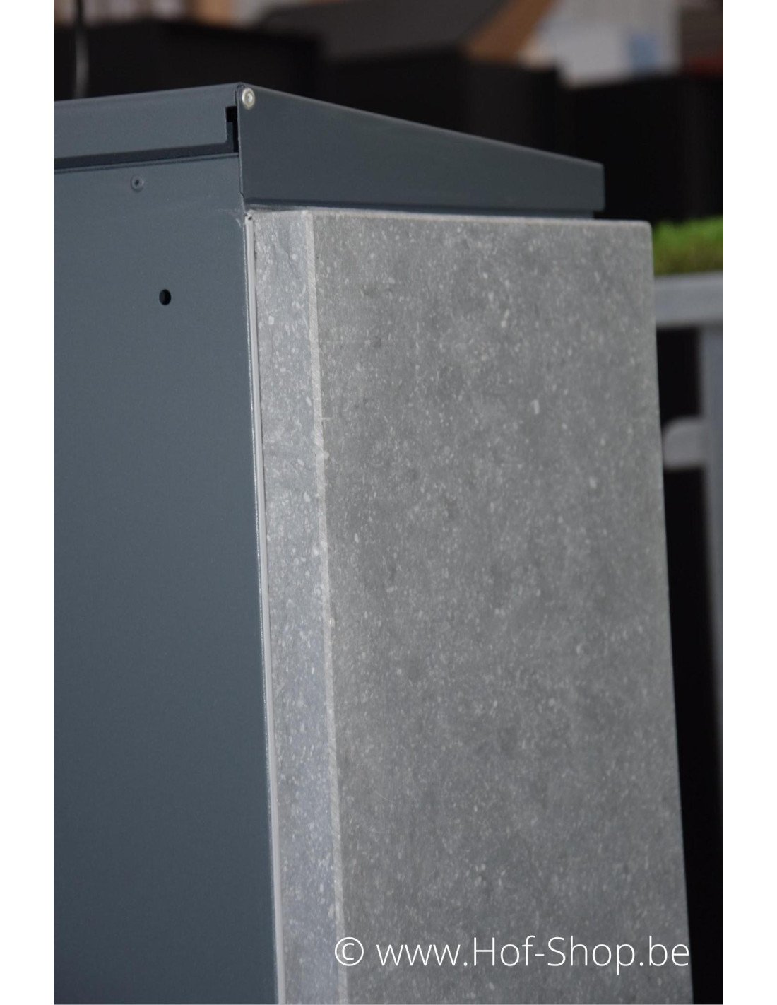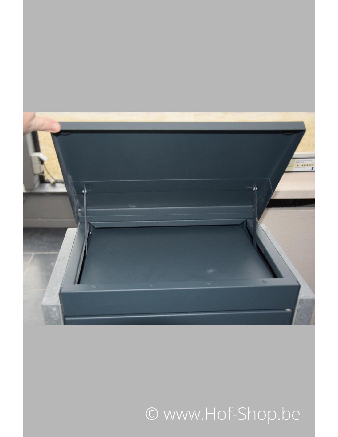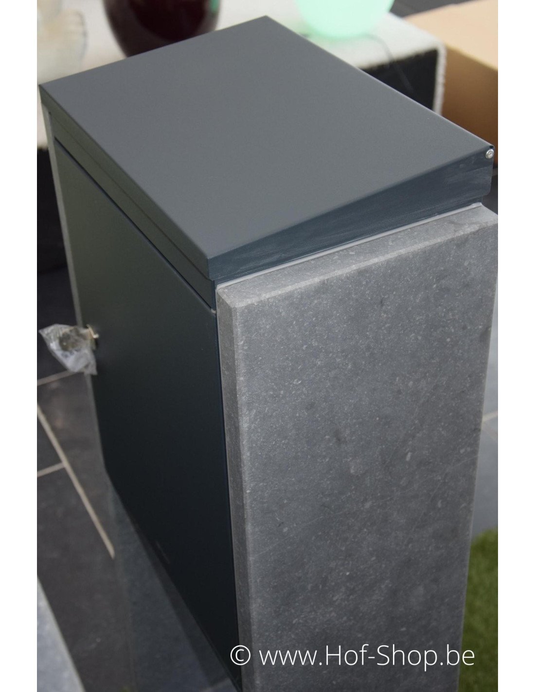 Model O is een tijdloze, stijlvolle postpakket brievenbus uit plaatstaal (gepoedercoated) gecombineerd met Belgische blauwe hardsteen. Deze vrijstaande brievenbus heeft een ruime postbak zodat u grote hoeveelheden post en kleine pakjes kan ontvangen.