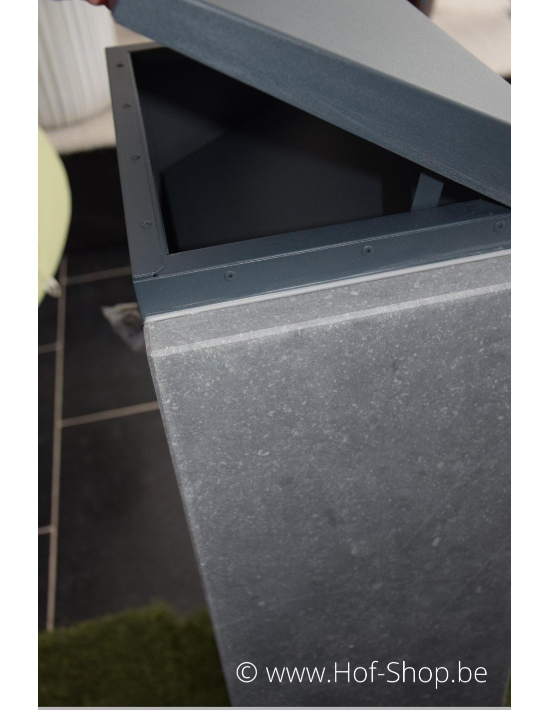De gebruikte natuursteen is Belgische arduin. Deze natuursteen heeft een gesloten structuur en is dus niet poreus. Een ideaal materiaal dus voor onze weersomstandigheden.