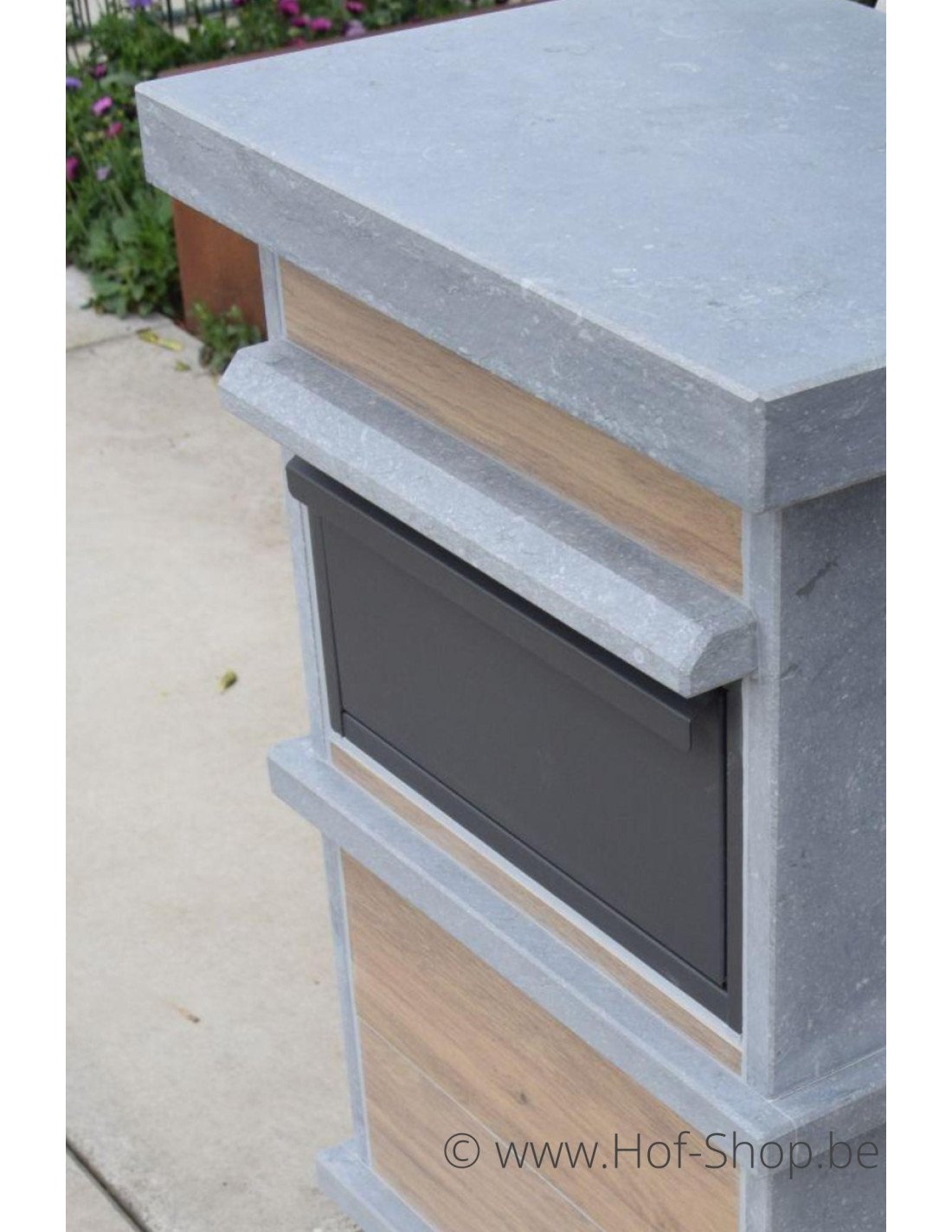 Pamplona Parcel is een landelijke, stijlvolle postpakket brievenbus uit Belgische blauwe hardsteen. Het front is een keramische tegel met houtlook. Het uitzicht is amper te onderscheiden van echt hout.