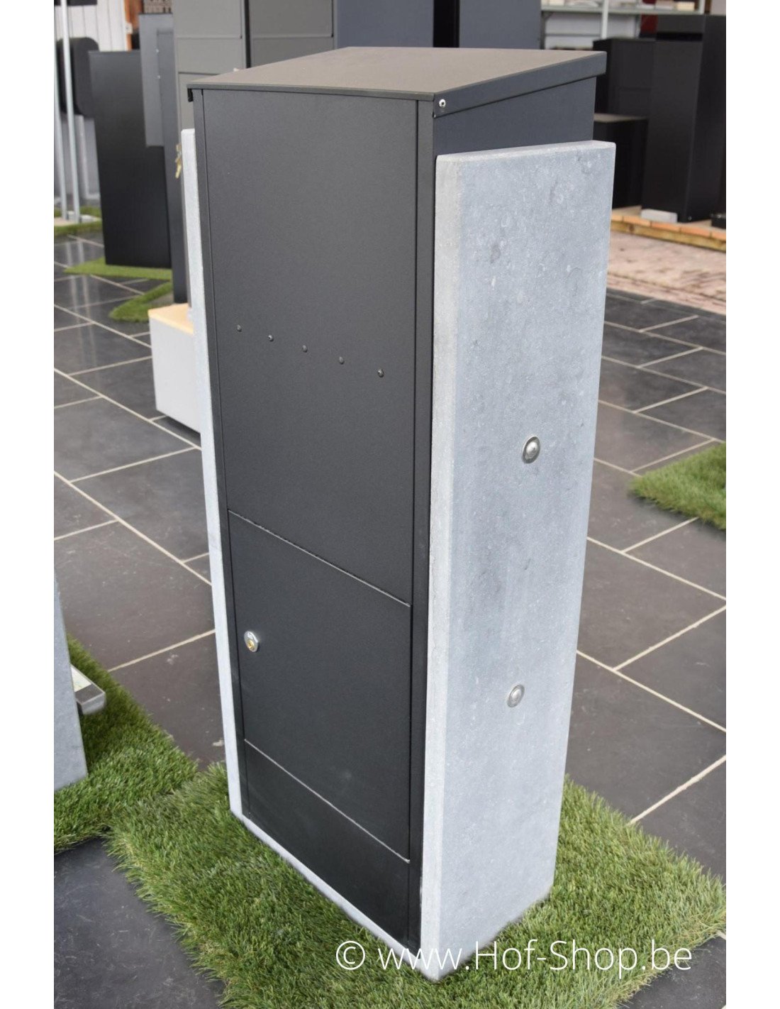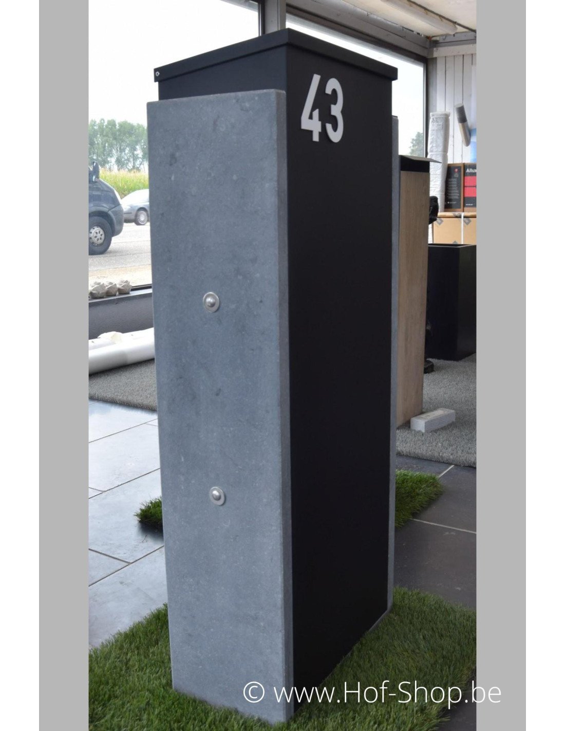 Deze vrijstaande pakjesbrievenbus Torino Big Parcel back door is een combinatie van Belgische blauwe hardsteen (arduin) met de Allux pakketbus 'Allux 600 Back Door'. Het deurtje om de post en pakketjes uit te halen, staat dus aan de achterzijde. Prijs-kwaliteit is dit een unieke en zeer degelijke brievenbus!