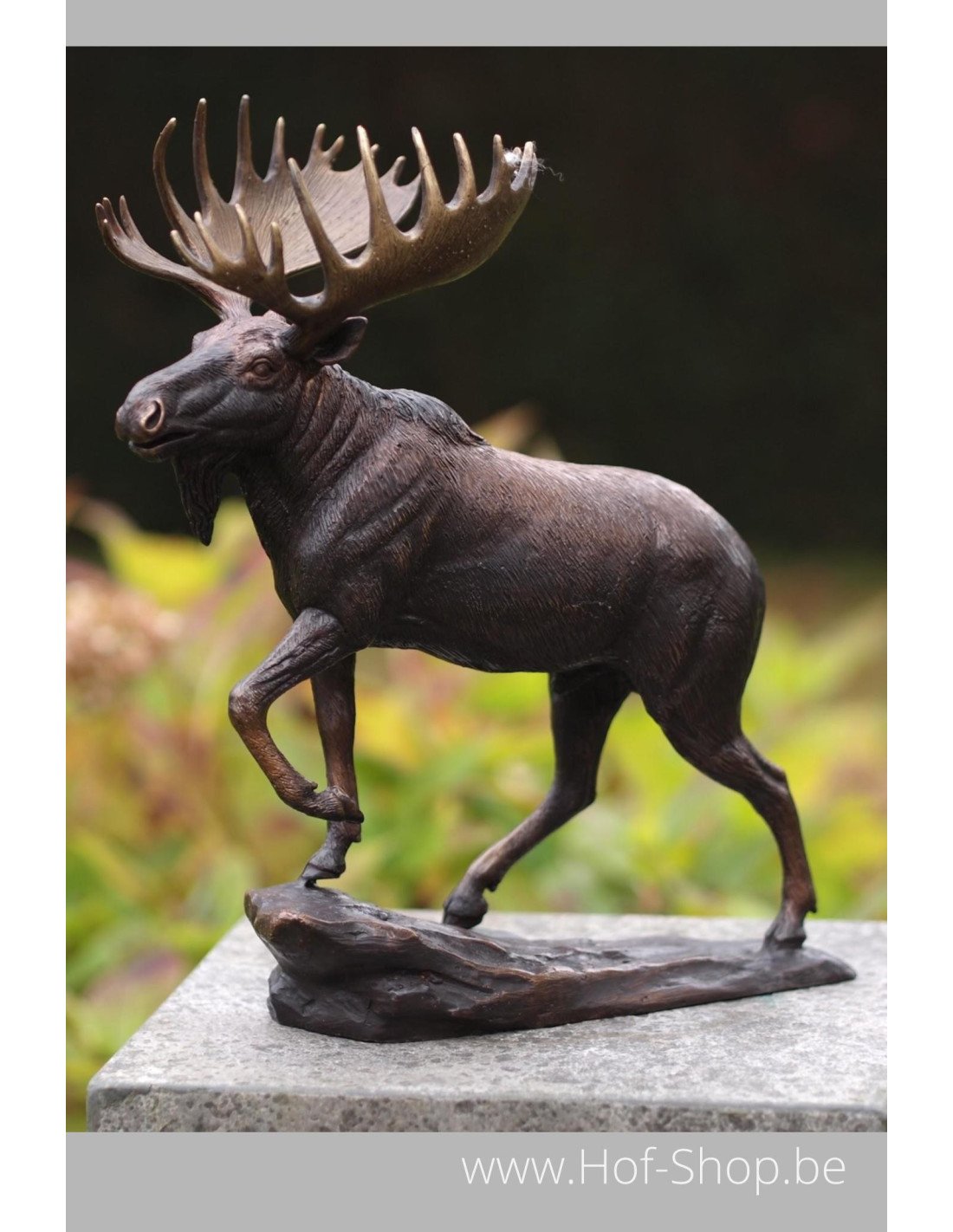 Dit realistische beeld van een eland is een leuke eyecatcher in iedere tuin of interieur. Het dier heeft een bronsbruine patina.