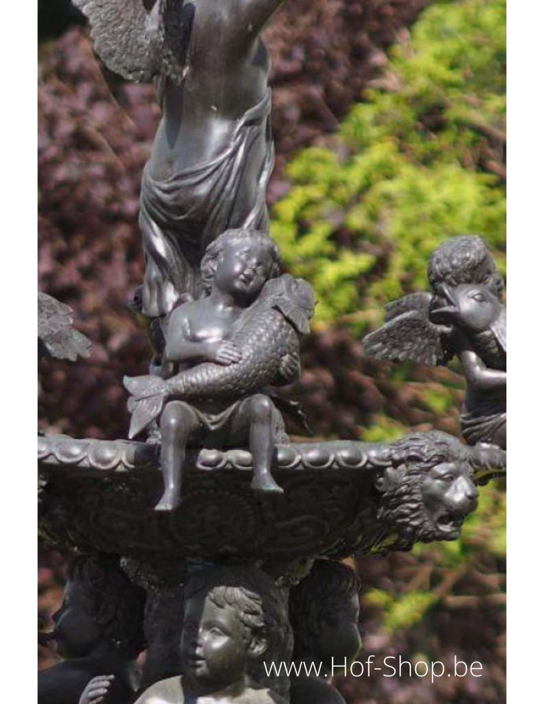 Een mooie fontein in brons met speelse engeltjes. Ze is 275 cm hoog.