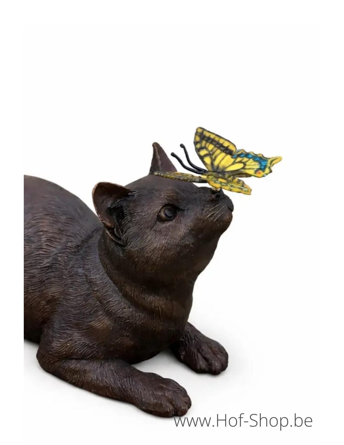 Bronzen kat met vlinder