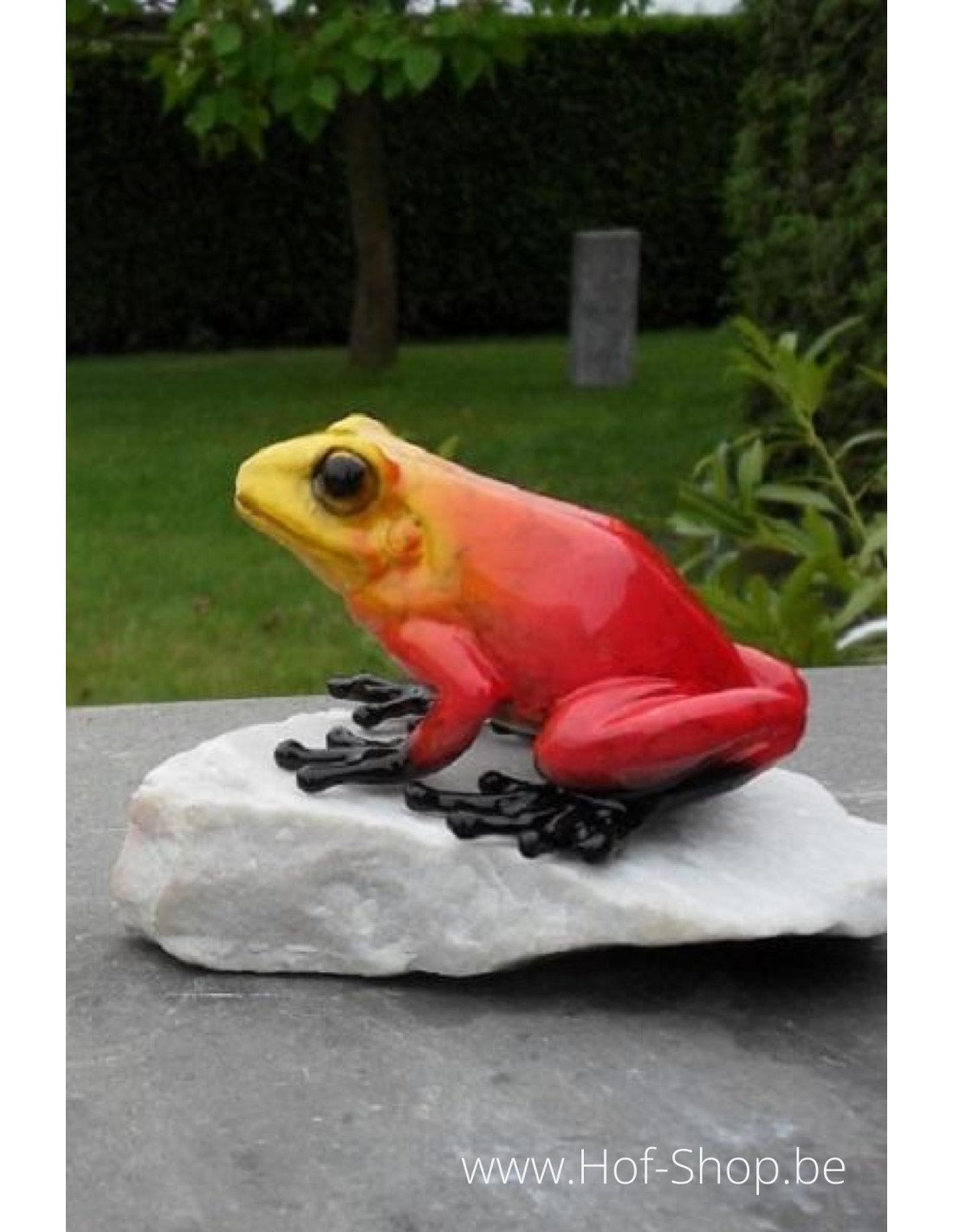 Kikker op rots (rood) - bronzen beeld (AN1071BR-C)