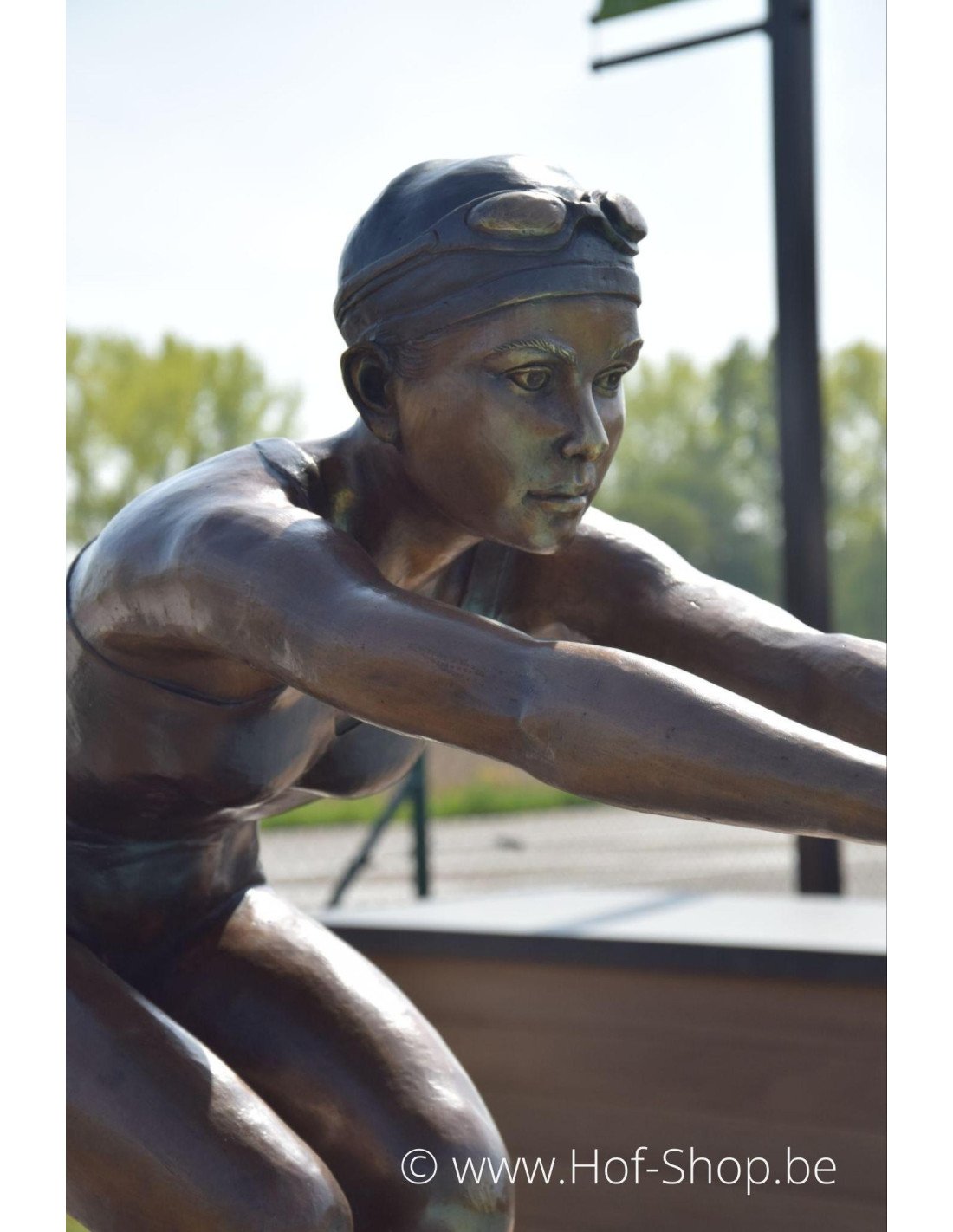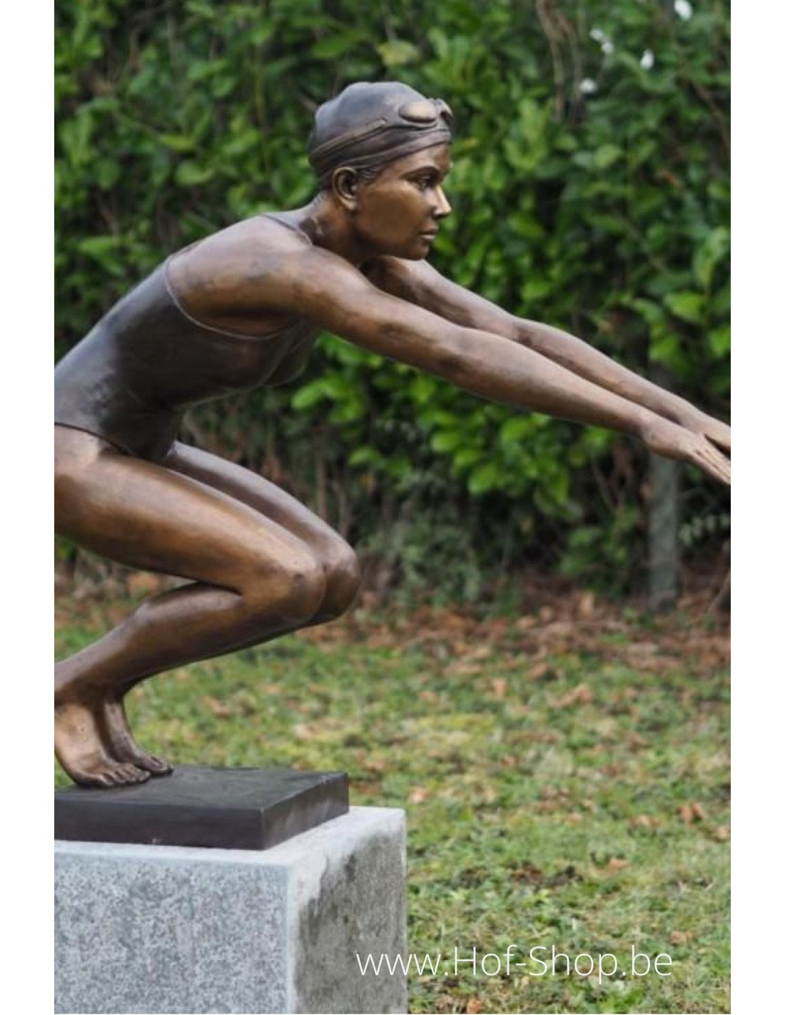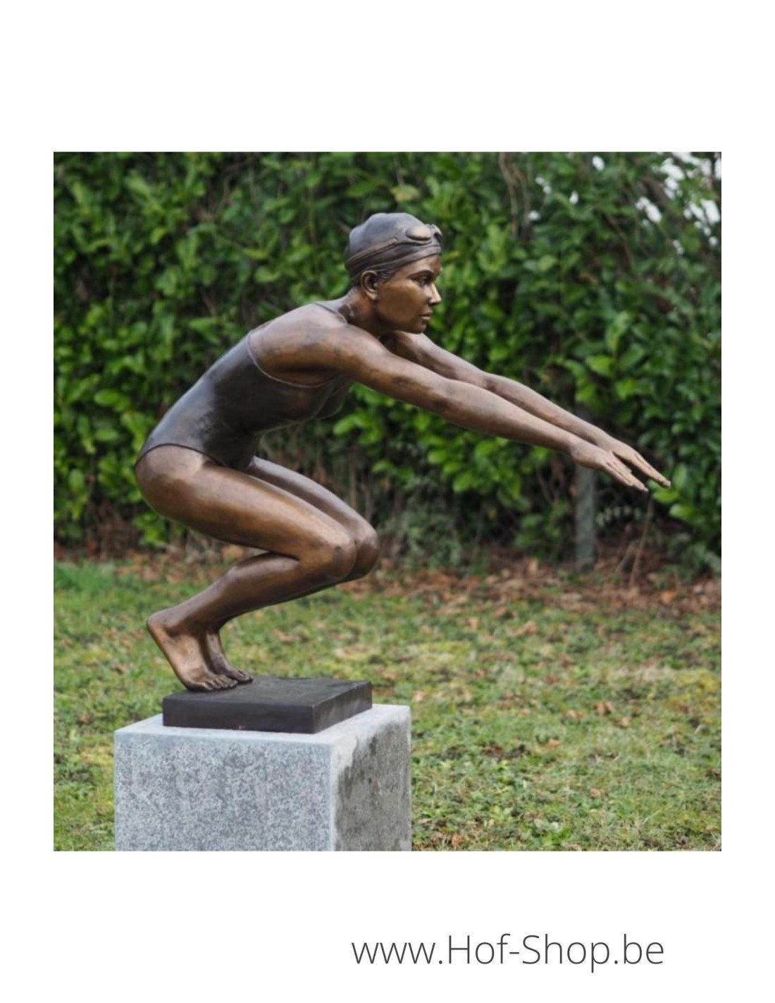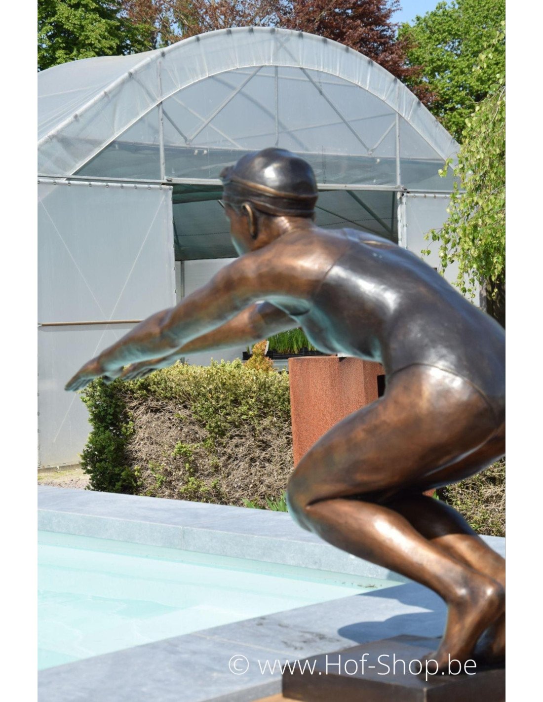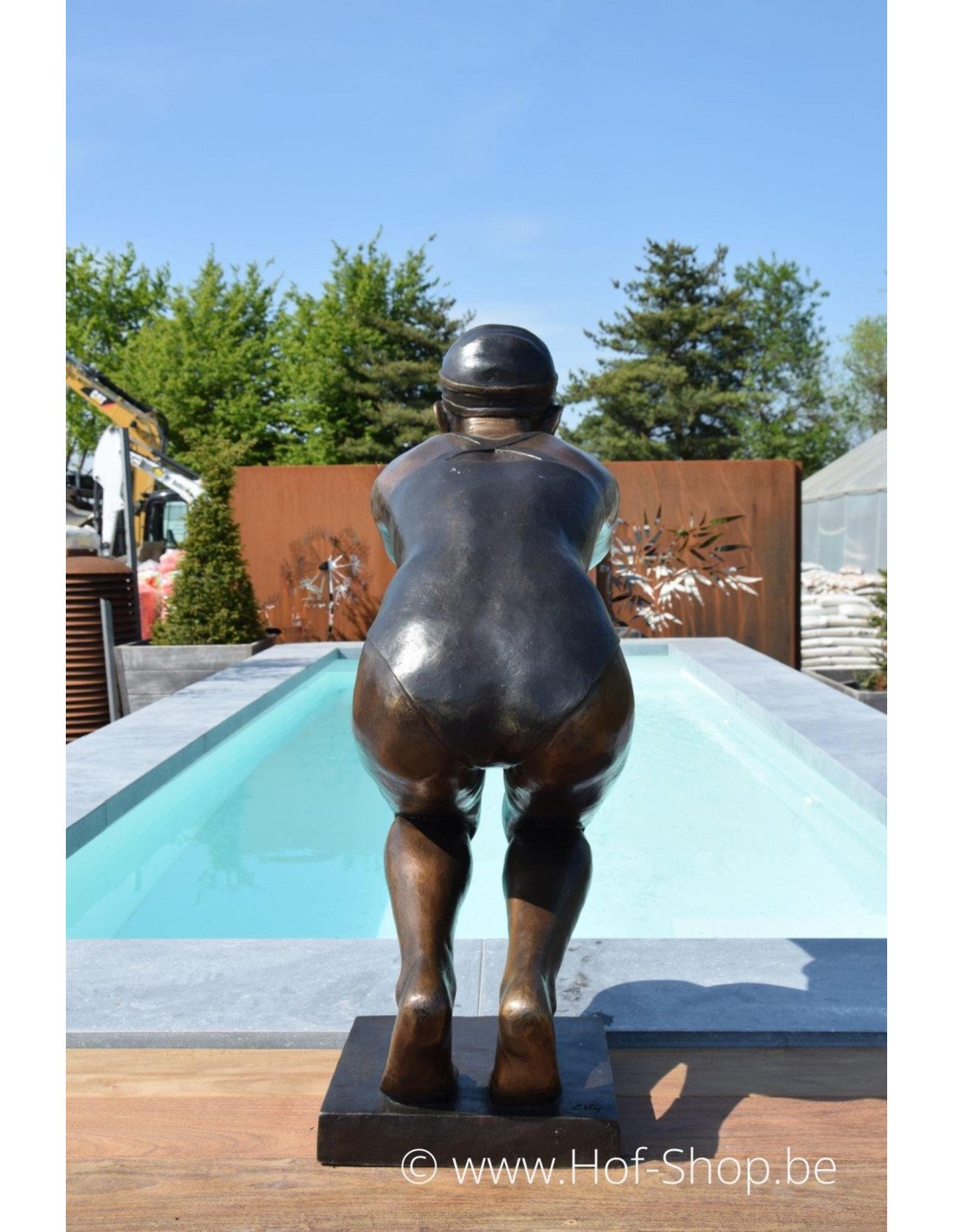 Dit moderne beeld van een meisje die een duik neemt is dé ultieme eyecatcher om te plaatsen aan de rand van je zwembad of zwemvijver. Deze duiker heeft een bronsbruine patina en maakt je zwembeleving helemaal compleet.