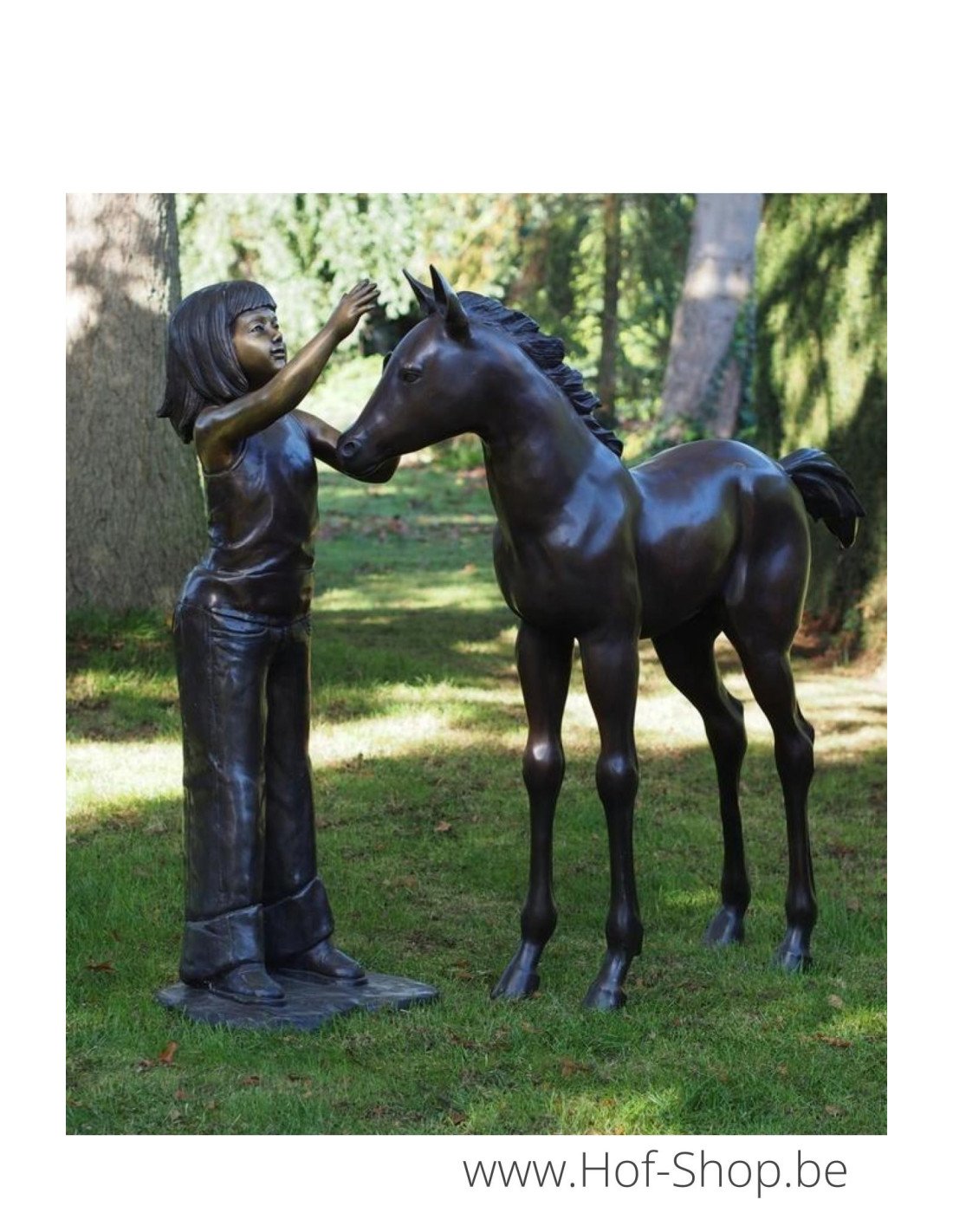 Dit is een prachtig bronzen beeld van een jong meisje met een veulen.
