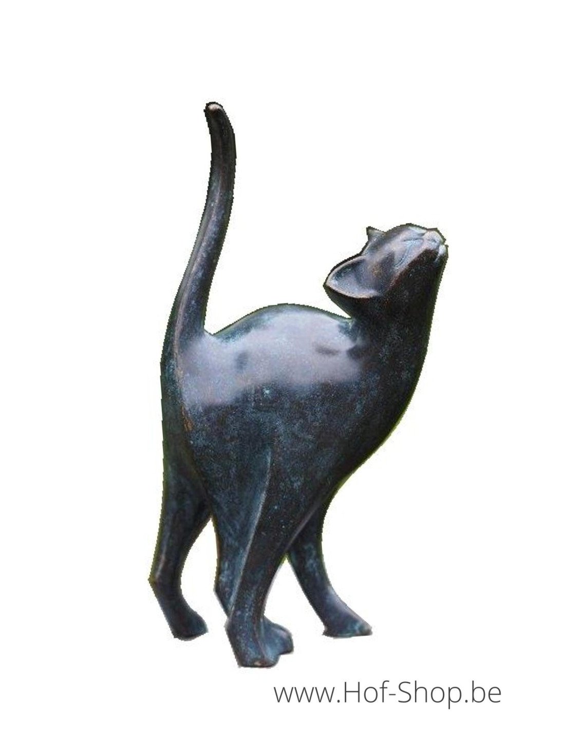 Dit moderne beeldje van een kat is een leuke eyecatcher in iedere tuin of interieur. Deze bronzen poes heeft een bronsgroene patina.