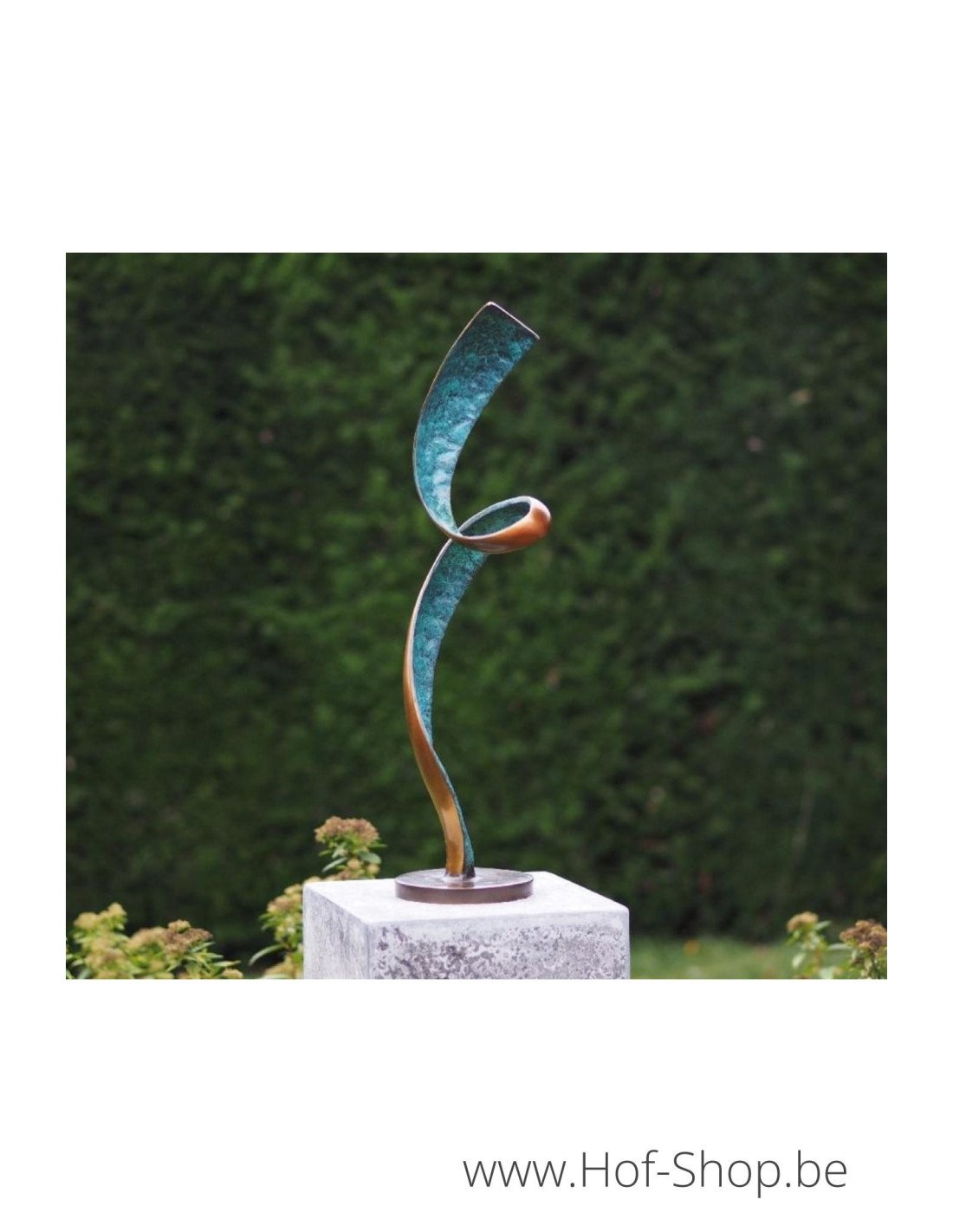 Dit prachtige moderne beeld is een leuke eyecatcher in iedere tuin of interieur. Dit beeld heeft een bronsbruine patina.