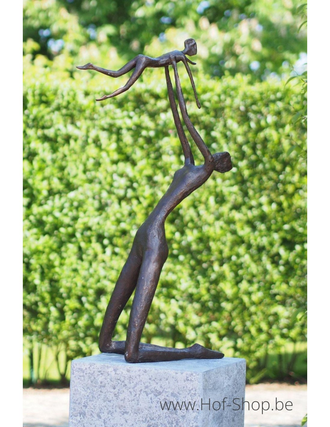 Een mooi bronzen beeld. Dit kan in de tuin staan, bijvoorbeeld op een sokkel in natuursteen, maar evengoed binnen in huis.