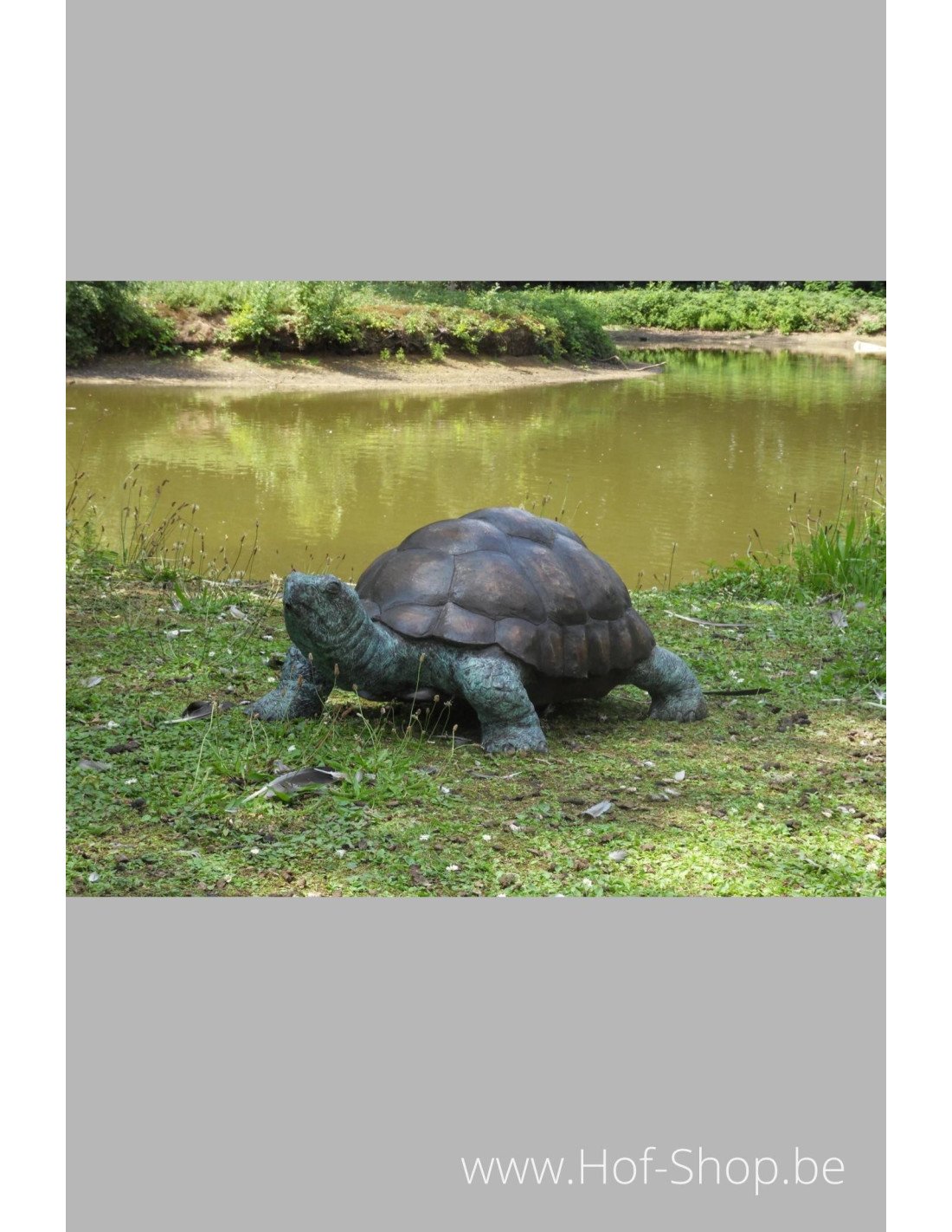 Dit realistische beeld van een schildpad is een leuke eyecatcher in iedere tuin of interieur. Dit diertje heeft een bronsgroene patina met bruin schild.