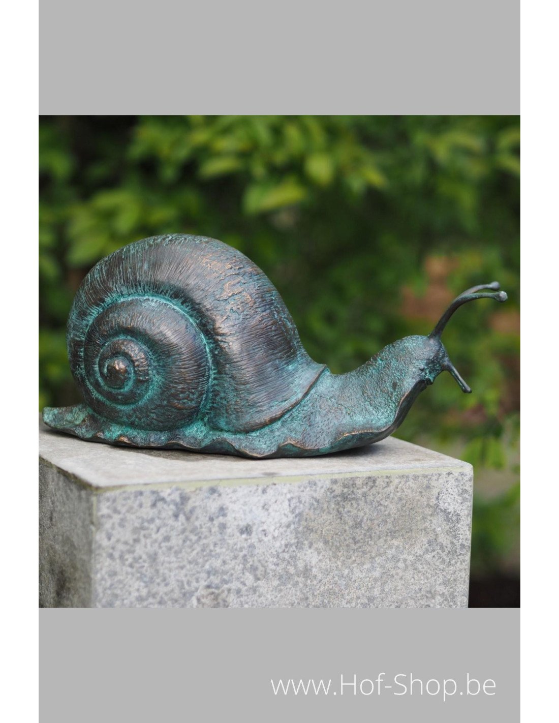 Dit realistische beeldje van een slak is een leuke eyecatcher in iedere tuin of interieur. Dit diertje heeft een bronsgroene patina.