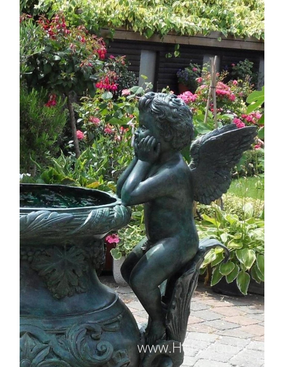 Prachtige bronzen vaas versierd met twee engeltjes. Met zijn 107 cm hoog een mooie blikvanger in uw tuin of interieur.