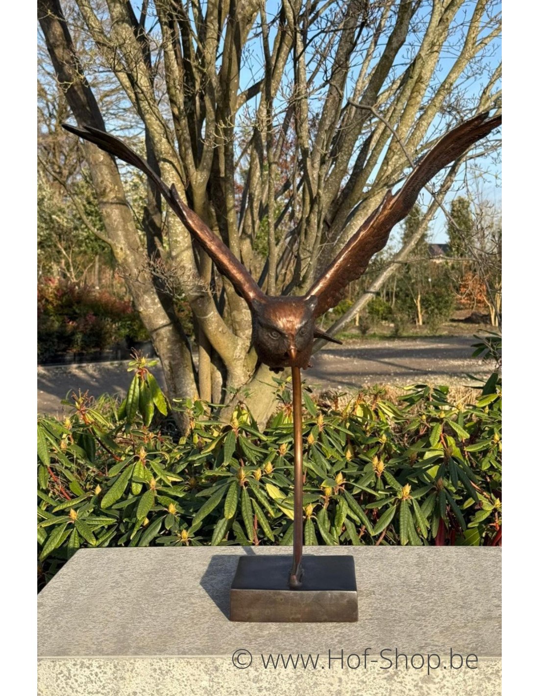 Dit realistische beeldje van een vliegende uil is een leuke eyecatcher in iedere tuin of interieur. Dit dier heeft een bronsbruine patina.