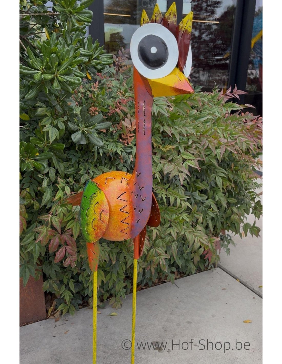 Deze kleurrijke metalen vogel is een grappige verschijning in iedere (voor)tuin of interieur. Dit speelse beeld fleurt dankzij zijn heldere kleuren iedere ruimte binnen of buiten meteen op.