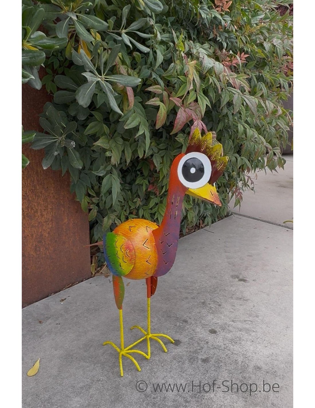 Deze kleurrijke metalen vogel is een grappige verschijning in iedere (voor)tuin of interieur. Dit speelse beeld fleurt dankzij zijn heldere kleuren iedere ruimte binnen of buiten meteen op.