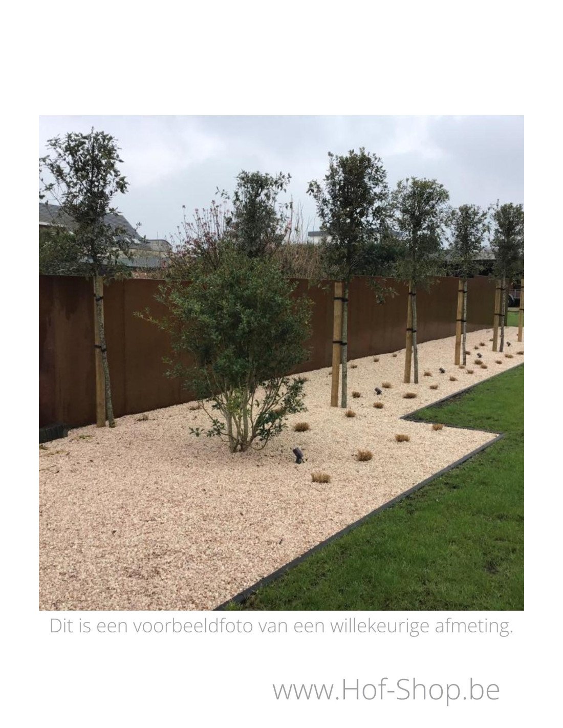 De cortenstalen bevestigingspalen zijn zo gemaakt dat ze zowel naast als achter de schutting kunnen geplaatst worden.