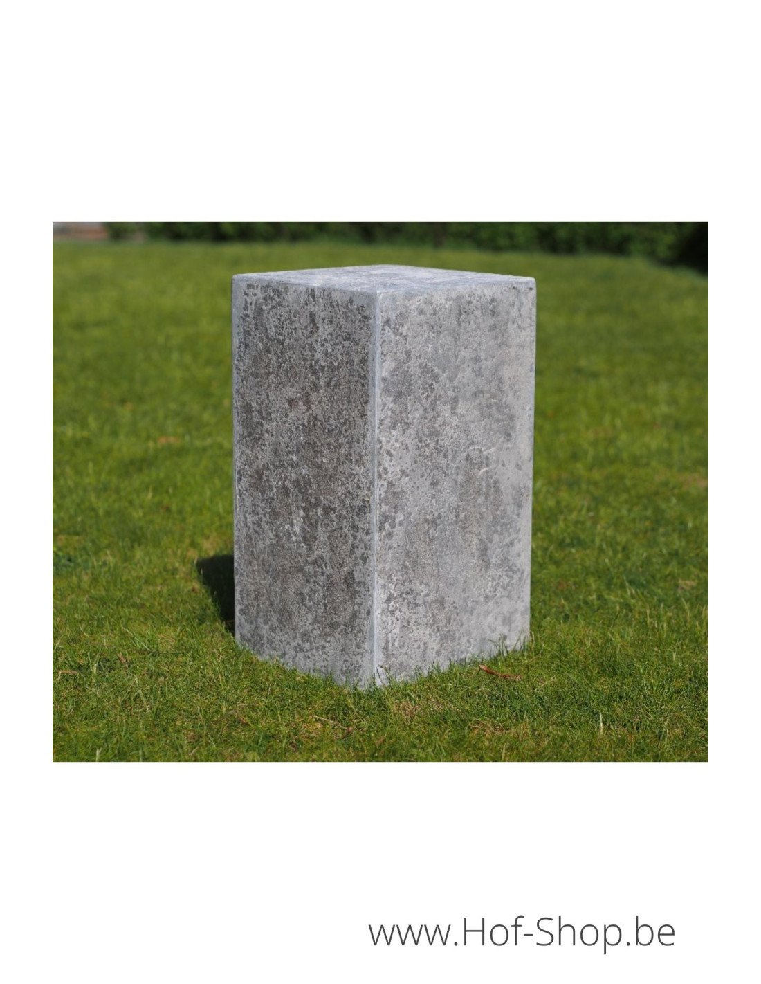 Deze rechthoekige presentatiezuil heeft een holle binnenzijde en is daardoor makkelijk hanteerbaar. De natuursteen is gevlamd en geborsteld.
